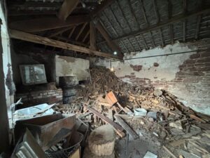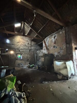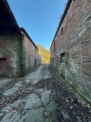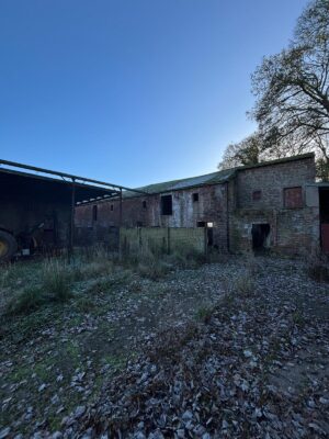 Alongside the house sits a farmyard of red sandstone buildings with oak beams and slate roofs, many of which have been untouched for over 50 years, creating an authentic and timeworn agricultural setting. Away from the main yard, additional isolated and derelict buildings add further texture and variety.