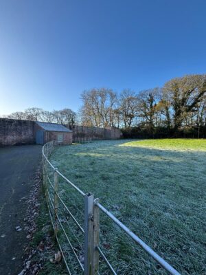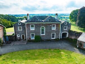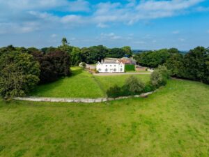 Featheridge Farm’s key feature is a substantial, empty Grade II listed farmhouse built in 1824, set deep within 310 acres of working farmland in Cumbria. Approached via a private half-mile tarmac driveway, the house feels grand and isolated, sitting elevated within the landscape and surrounded by open fields and rolling countryside. The position offers long, uninterrupted views: across farmland towards the Lake District to the front, and over the Solway to Scotland.