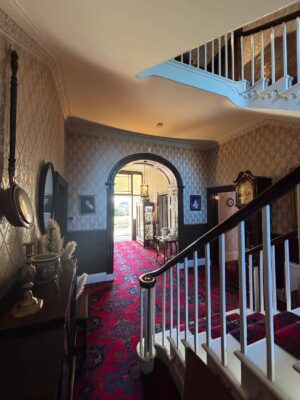 The main farmhouse is largely a blank canvas and remains furnished, retaining an old-fashioned but well-kept character. Interiors include multiple reception rooms, bedrooms and service spaces, with period details such as service bells, a service staircase and traditional layouts still intact. Close by sits an empty red brick former servants’ house, also available as a blank canvas, offering additional standalone interior and exterior filming potential.
