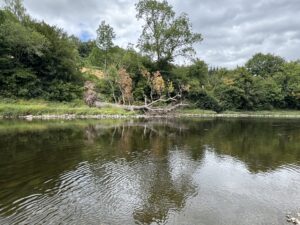 • Water features include a river, ponds and a large glacial lake