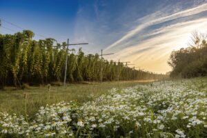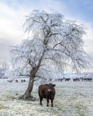 Working in harmony with biodiversity is a herd of Sussex beef cattle, pasture-fed, and grazing the land all year long.