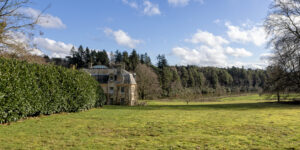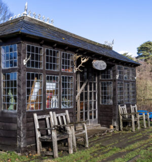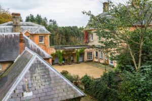 The estate features a striking principal house, Victorian farm buildings arranged around a courtyard, traditional cottages, and many other historic details; they include an Edwardian fishing hut on a lakeside jetty, wartime pillboxes, hop gardens and secluded woodland shelters.