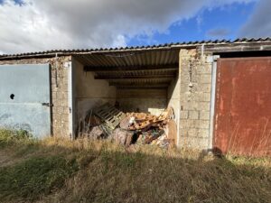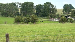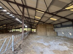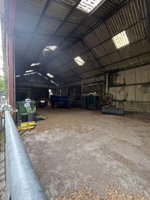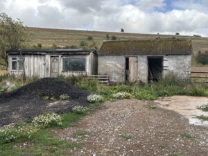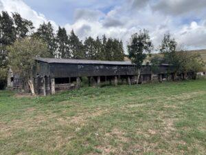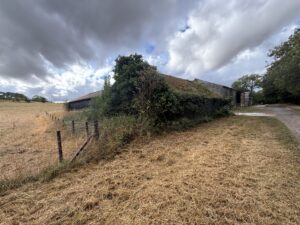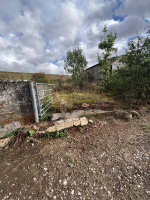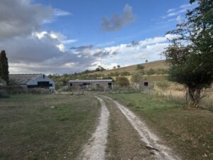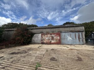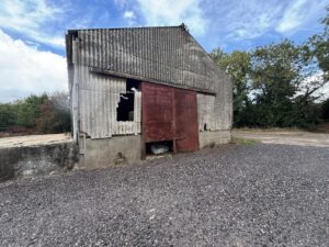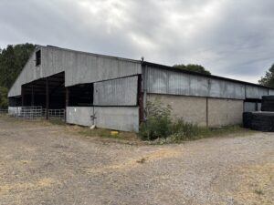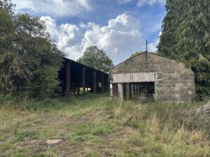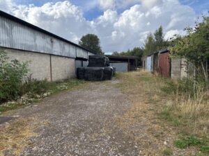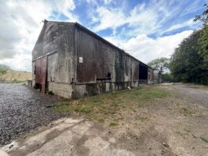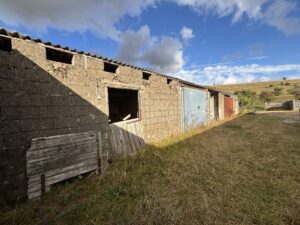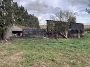 - Old stables, farm buildings, and a stone-walled cattle yard with derelict barns and sheds