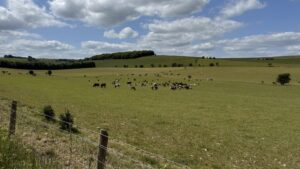 Sentinel Manor Farm spans 700 acres of organic grassland, offering a dramatic and visually different landscape with wildflower meadows and open fields that stretch across valleys and downland, with no visible modern intrusions. The farm is home to 200 cattle, a small flock of rare-breed sheep, and two horses, giving productions the authentic feel of a working farm.