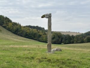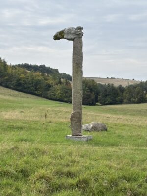 - 14-foot high neolithic-style sculpture in a field