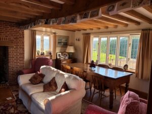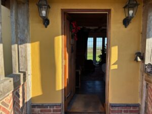 The farmhouse is a striking yellow property with cosy interiors and boasting uninterrupted views. A 400-year-old oak barn, old farmyards, derelict buildings, and modern agricultural structures provide a variety of rustic and practical backdrops for film, TV and photoshoots.