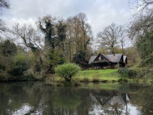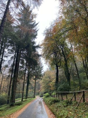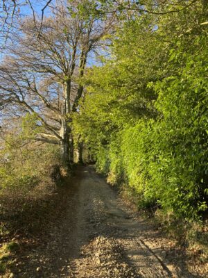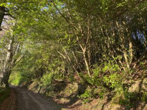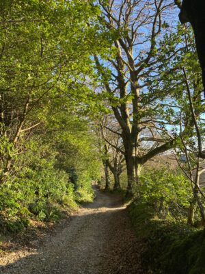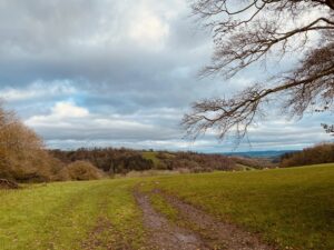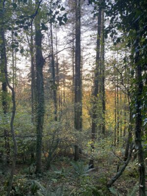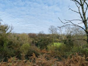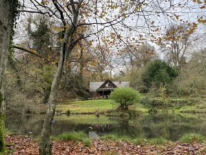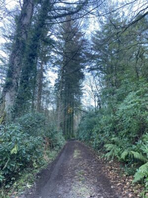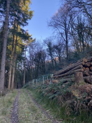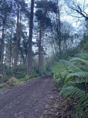Woodland is a defining feature here, with wide tracks cutting through areas of ancient trees, rhododendron and laurel, timber stacks from active forestry, and seasonal bluebells. Fields often run directly into woodland without fencing, adding to the natural, untamed feel, while lakes, ponds and streams provide additional backdrops.