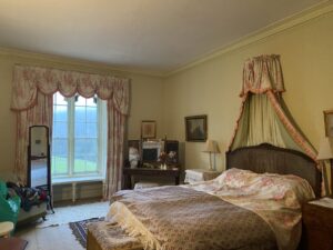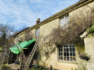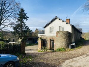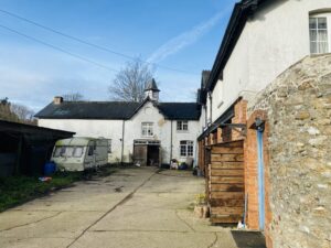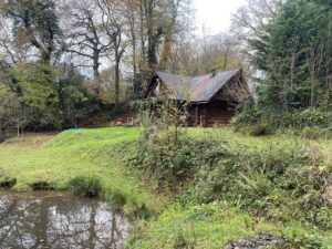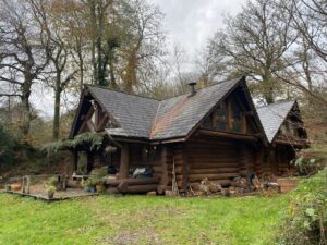 At the centre of the estate sits a Georgian country house within established parkland, with elegant proportions and traditional interiors available for filming. Around the estate, a mix of buildings ranges from a traditional mixed-era farmyard with timber barns and corrugated structures, to more characterful elements, including partially derelict stone linney, log cabins in the woods and by the water, a static caravan set within the forest, along with other caravans.