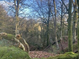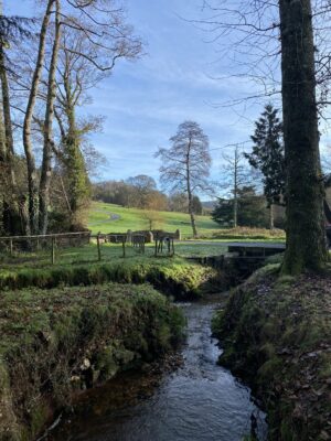 From open grass fields and parkland to dense woodland, marshy ground and dramatic ravines, Whisper Estate is varied, secluded and full of atmosphere. Grazing across the grassland are a mix of Red Devon cattle, shire horses, a donkey and an Ardenne mare. The estate’s ancient, steep-sided valleys carved by rivers and streams, create striking, enclosed contours, while higher ground opens out into far-reaching views that can feel mountain-like at close range.