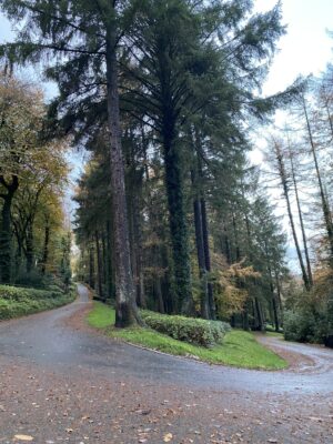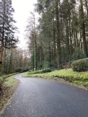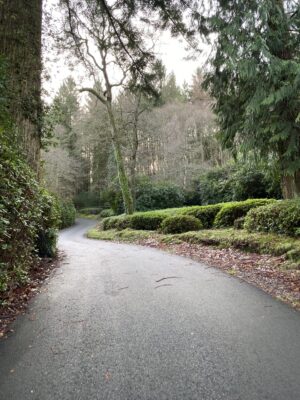 Private drives, including a 1.2km tarmac hill climb road and woodland tracks