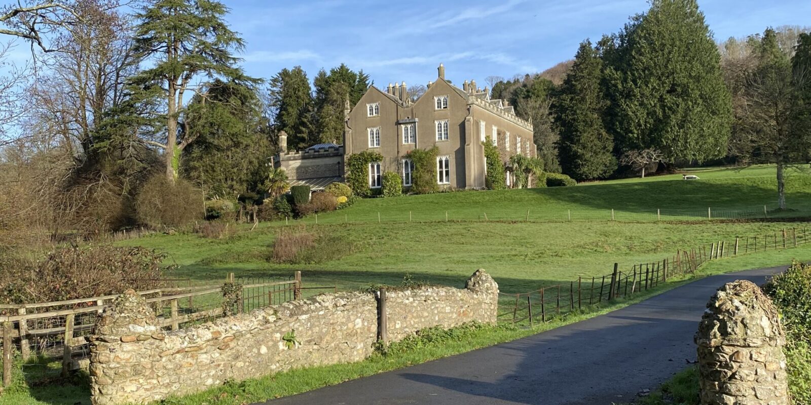 Woodland is a defining feature here, with wide tracks cutting through areas of ancient trees, rhododendron and laurel, timber stacks from active forestry, and seasonal bluebells. Fields often run directly into woodland without fencing, adding to the natural, untamed feel, while lakes, ponds and streams provide additional backdrops.