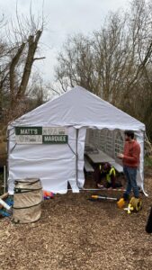 Location Manager, Andy Moore, contacted us in September 2024 on the hunt for one of the main hero locations – a cottage that feels a little isolated (but still accessible) close to Bristol. We naturally thought Ten Acre Woods matched that brief well and a recce was set up. After a number of visits, production company, Big Talk Productions, chose Ten Acre Woods as the location for the Fenton house and the location was taken over from February 2025 for several weeks, with filming finishing in April.